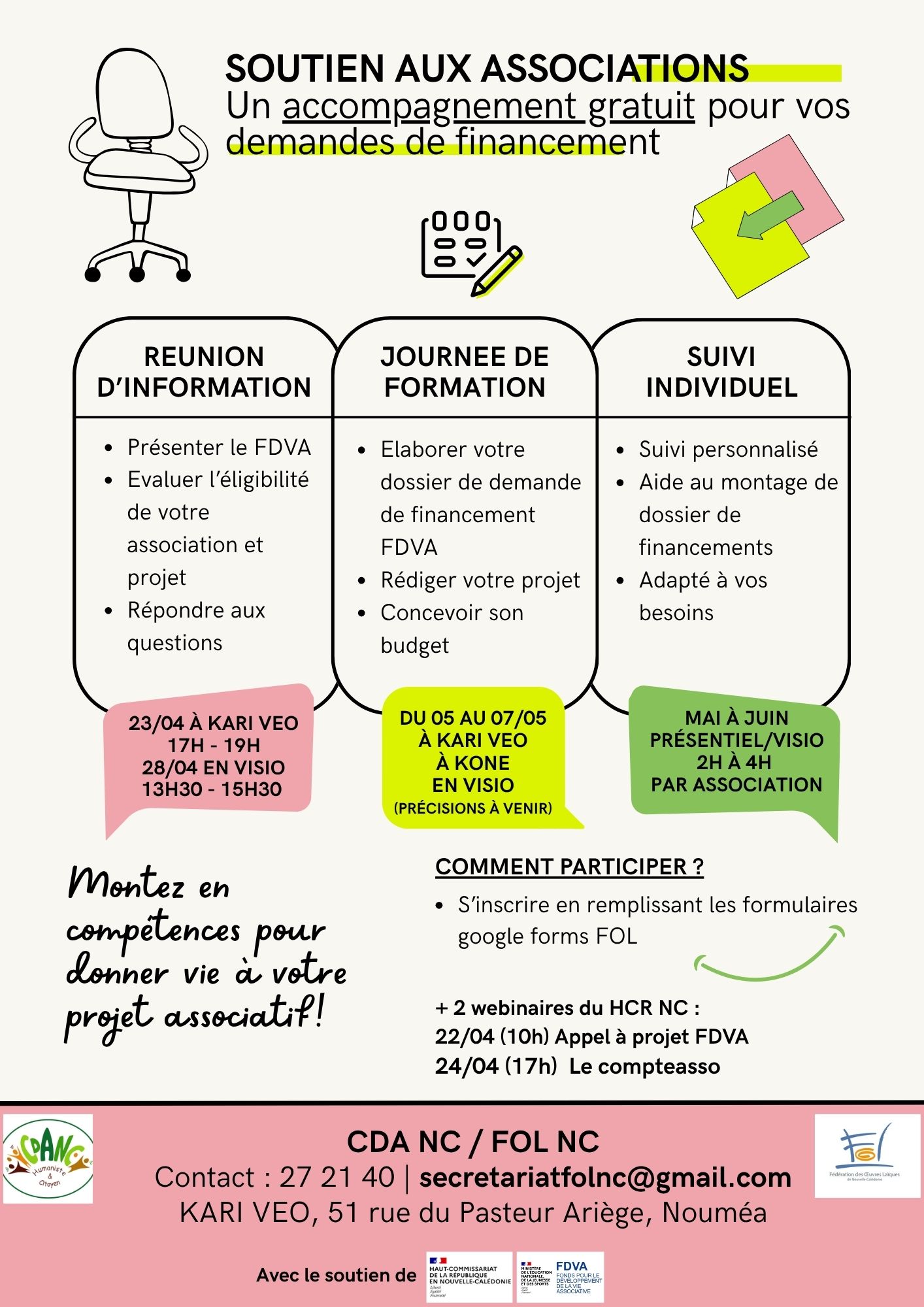 Habilitée par la DFPC, la FOL NC met en place différentes formations en lien avec ces champs de compétences : Handicap, Animation, Méthodologie de projet, Droits, Formations des responsables associatifs, Management associatifs